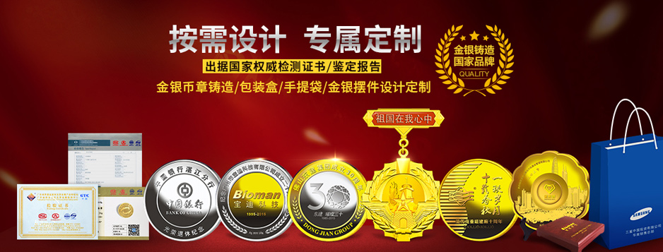 連續多年廣東省守合同重信用企業。國家黃金品質/國家造幣工藝,金銀定制品牌企業。