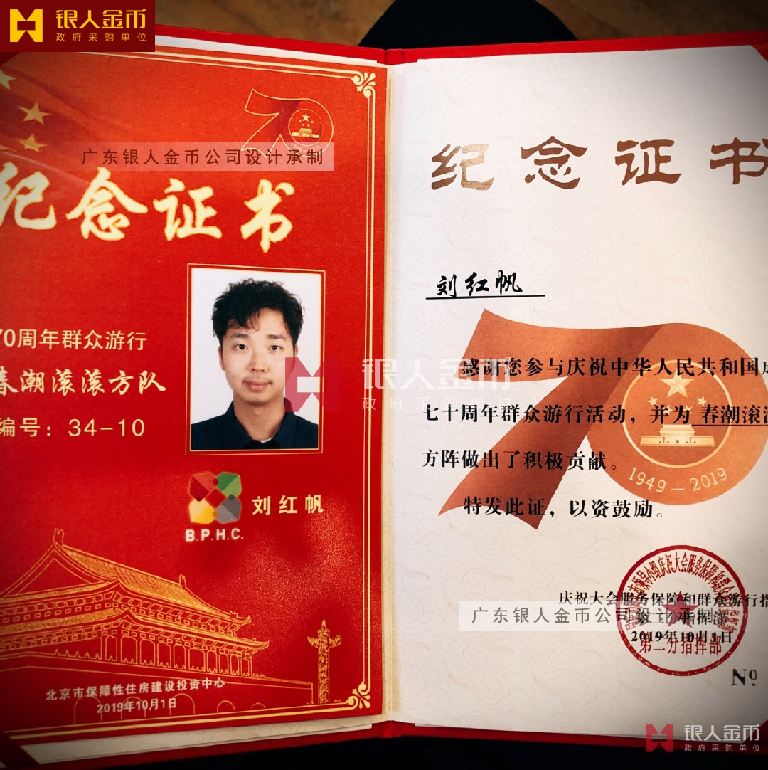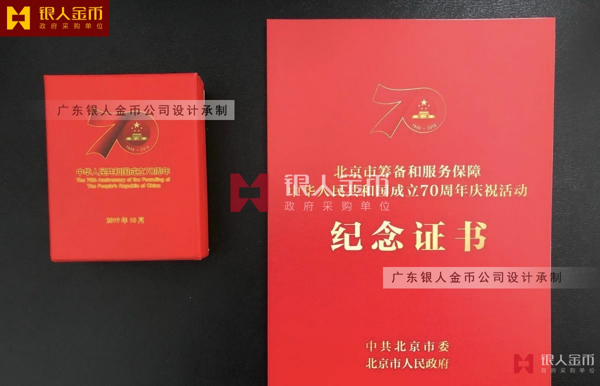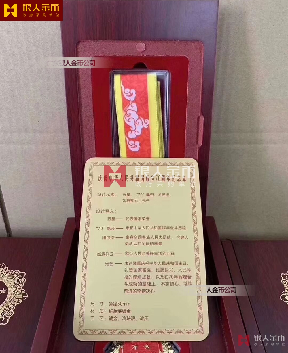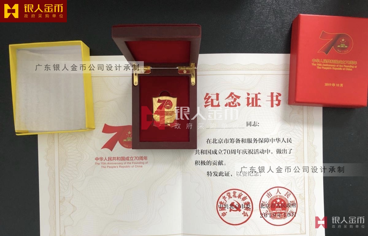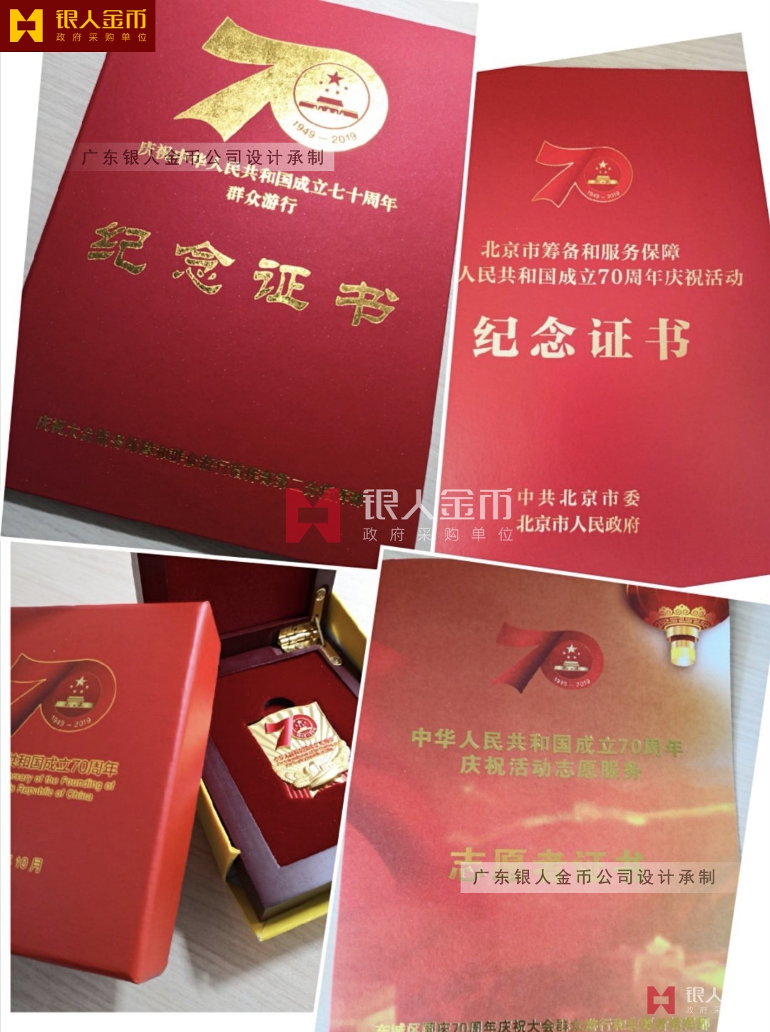 中宣部國慶70年慶祝活動留念紀念章紀念徽章證書