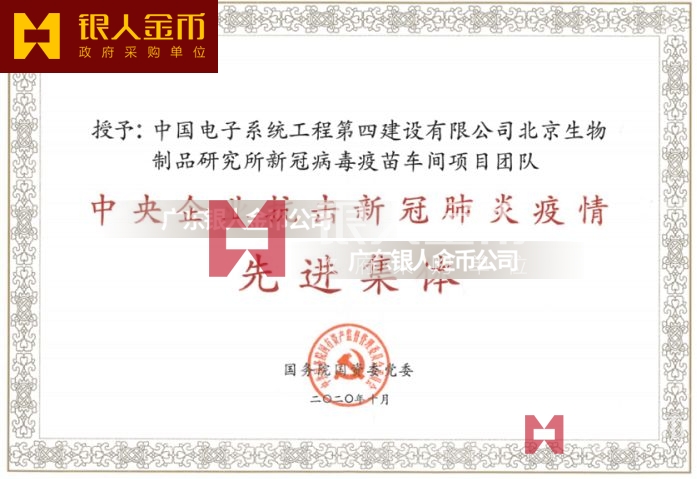 國務院國資委中央企業抗擊疫情先進集體獎牌證書和中央企業先進基層黨組織獎牌證書(圖)