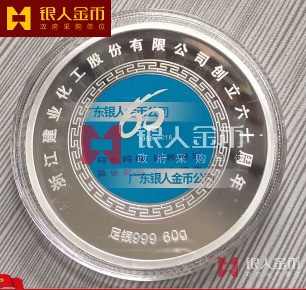 浙江建業化工公司成立60周年慶銀質紀念章定制與銀制紀念章定做(圖)