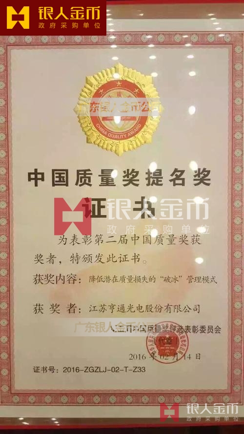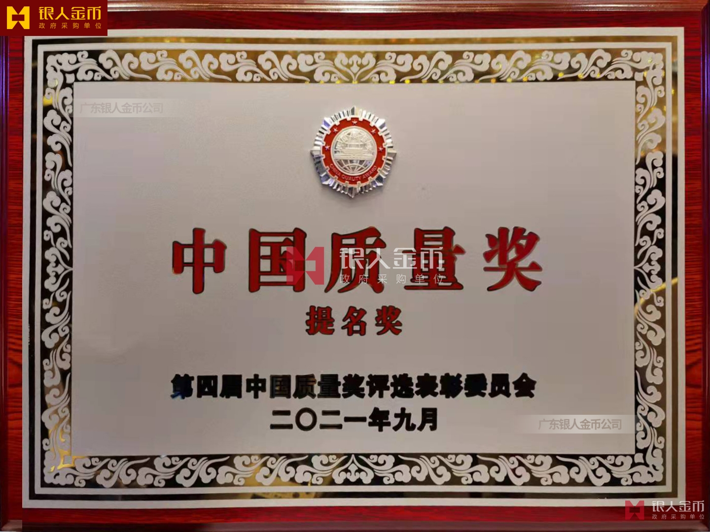 中國質量獎獎章獎牌獎杯及證書(圖)【廣州銀人獎章證章廠有限公司】