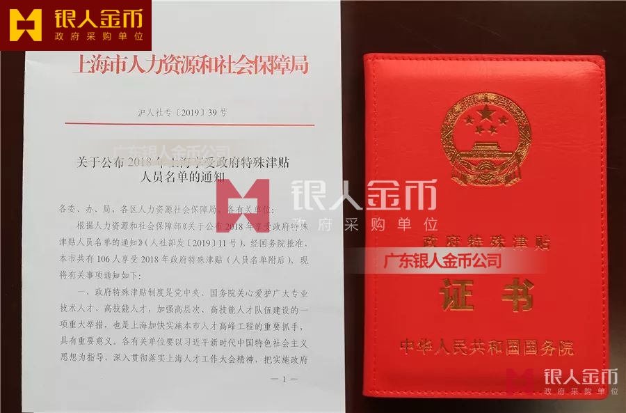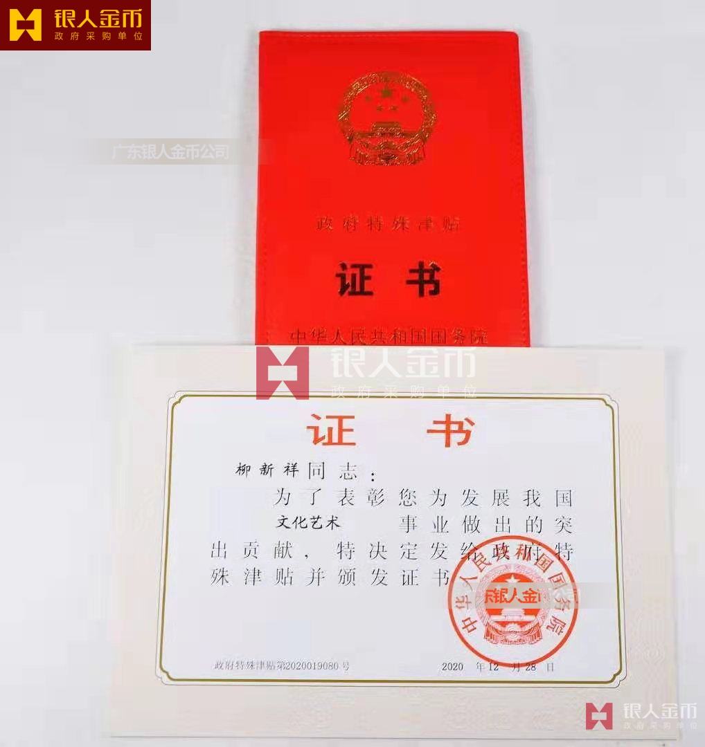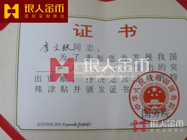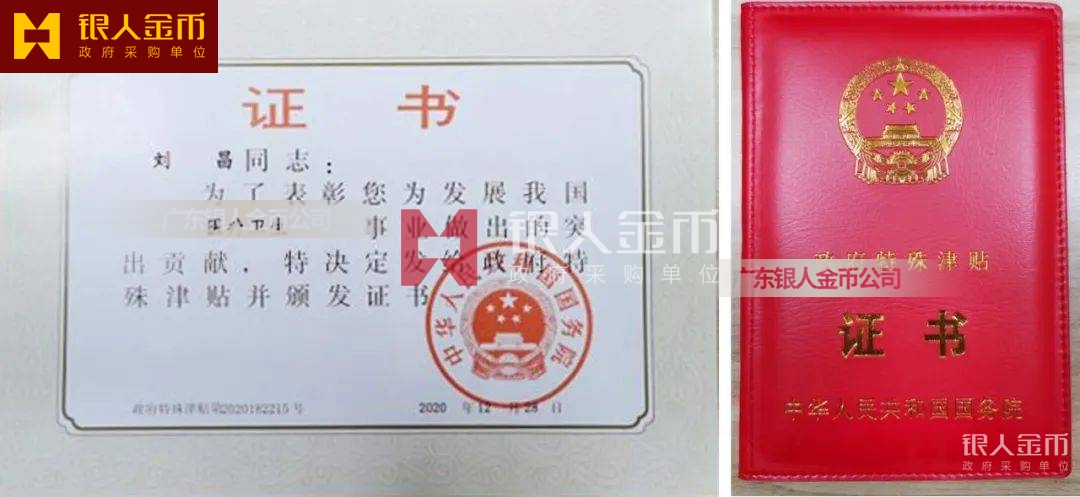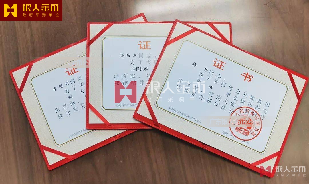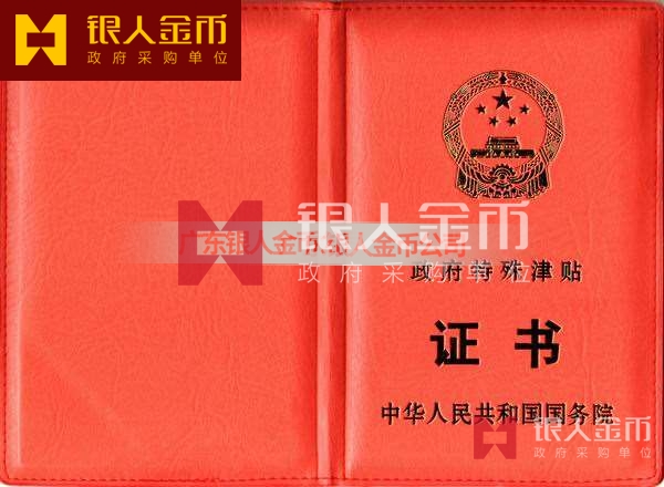 中華人民共和國國務院政府特殊津貼證書(圖)-【廣州銀人紀念章證章廠家有限公司】