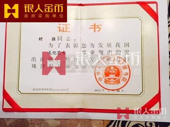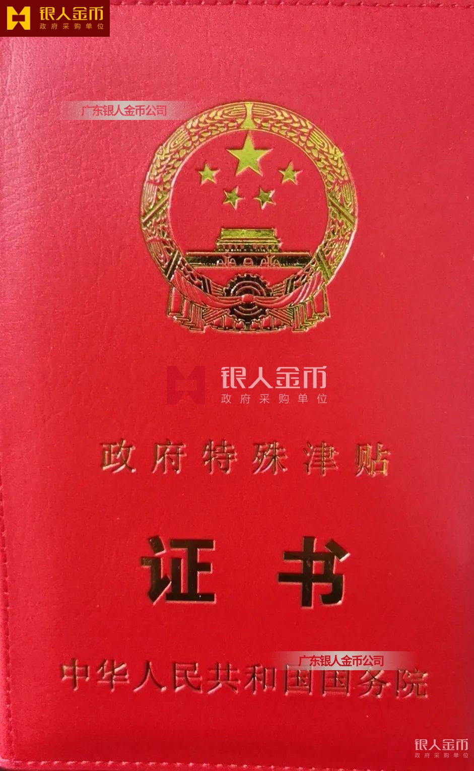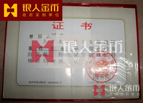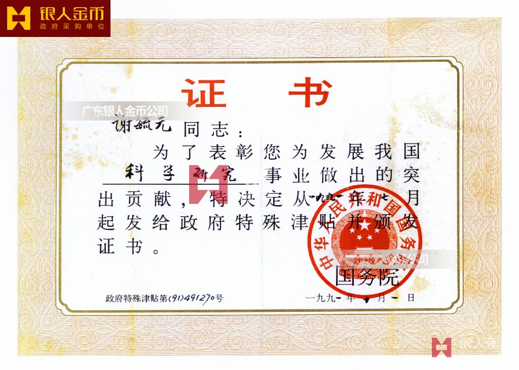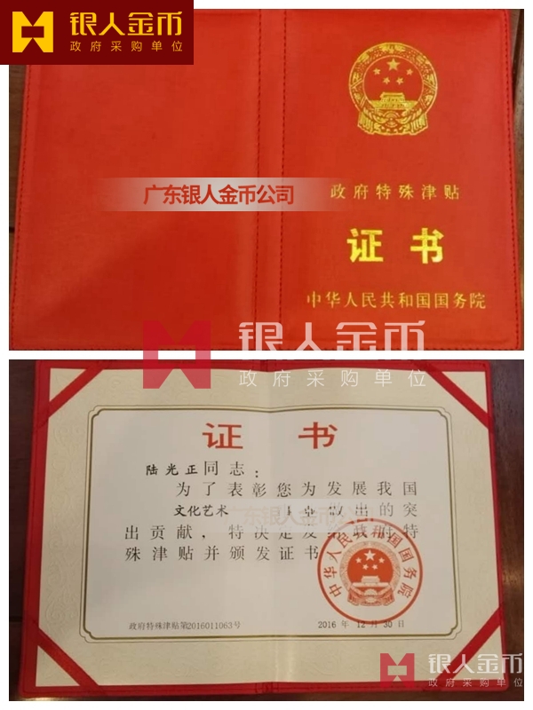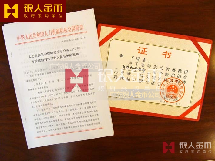 中華人民共和國國務院政府特殊津貼證書(圖)-【廣州銀人紀念章證章廠家有限公司】
