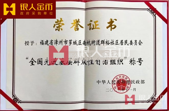 中華人民共和國民政部頒發“全國先進基層群眾性自治組織”獎狀及獎牌牌匾證書(制作標準)-【廣州獎牌徽章廠有限公司】
