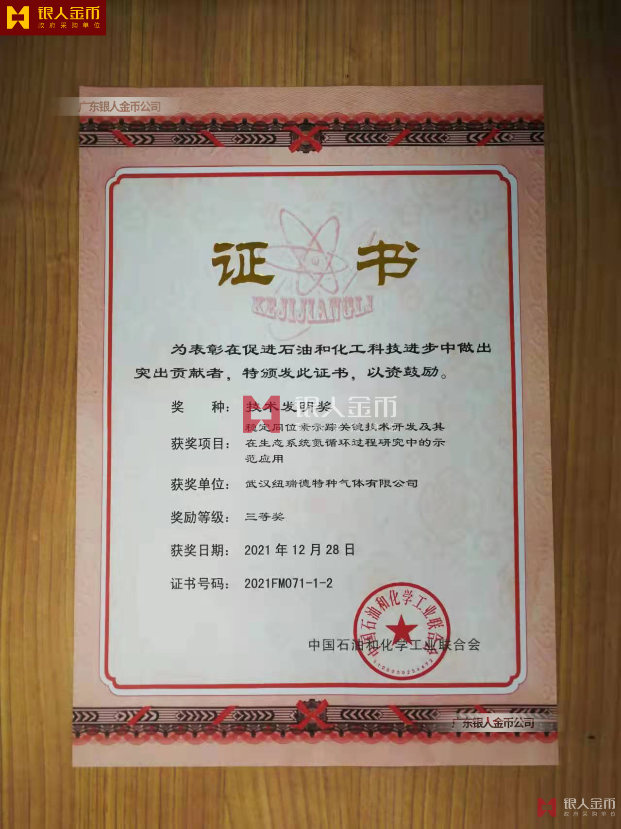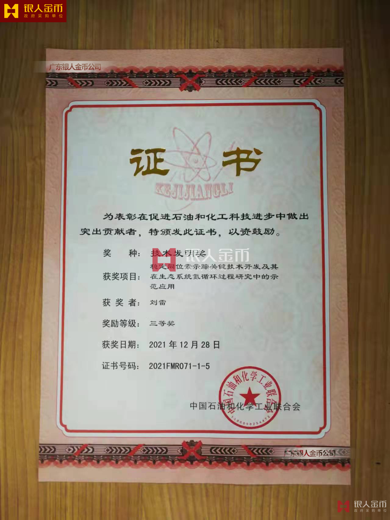 中國石油和化學工業聯合會科學技術獎證書(圖)