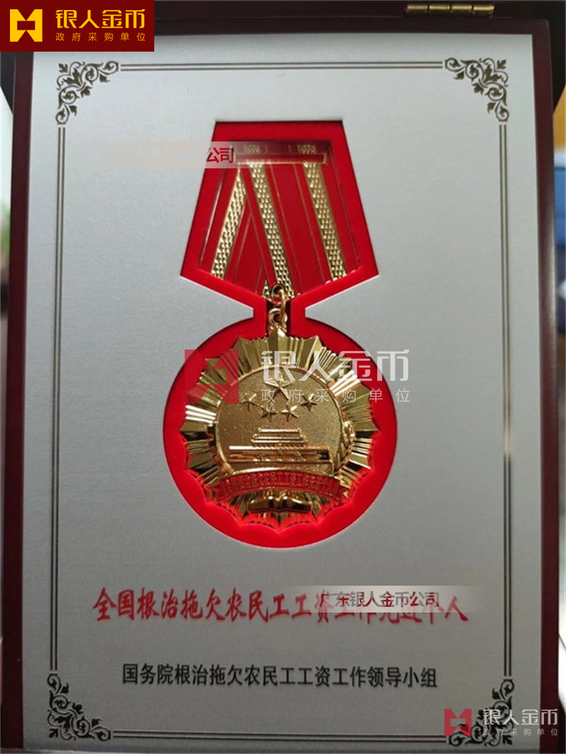 國務(wù)院根冶拖欠農(nóng)民工工資工作領(lǐng)導(dǎo)小全國根治拖欠農(nóng)民工工資工作先進(jìn)個(gè)人和先進(jìn)集體獎(jiǎng)?wù)聞渍录o(jì)念章獎(jiǎng)牌證書(圖)