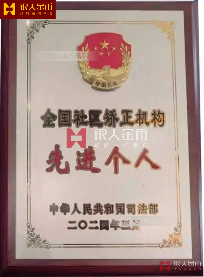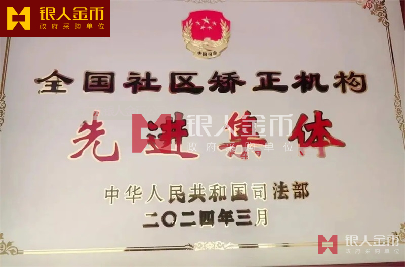 司法部全國社區矯正機構先進個人和先進集體獎牌證書(圖)