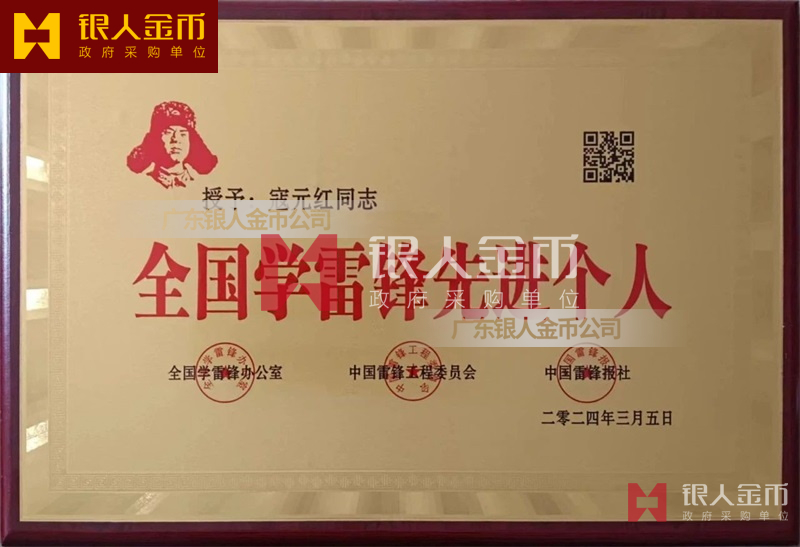 中共中央宣傳部全國學雷鋒先進個人獎牌牌匾銅牌證書(圖)