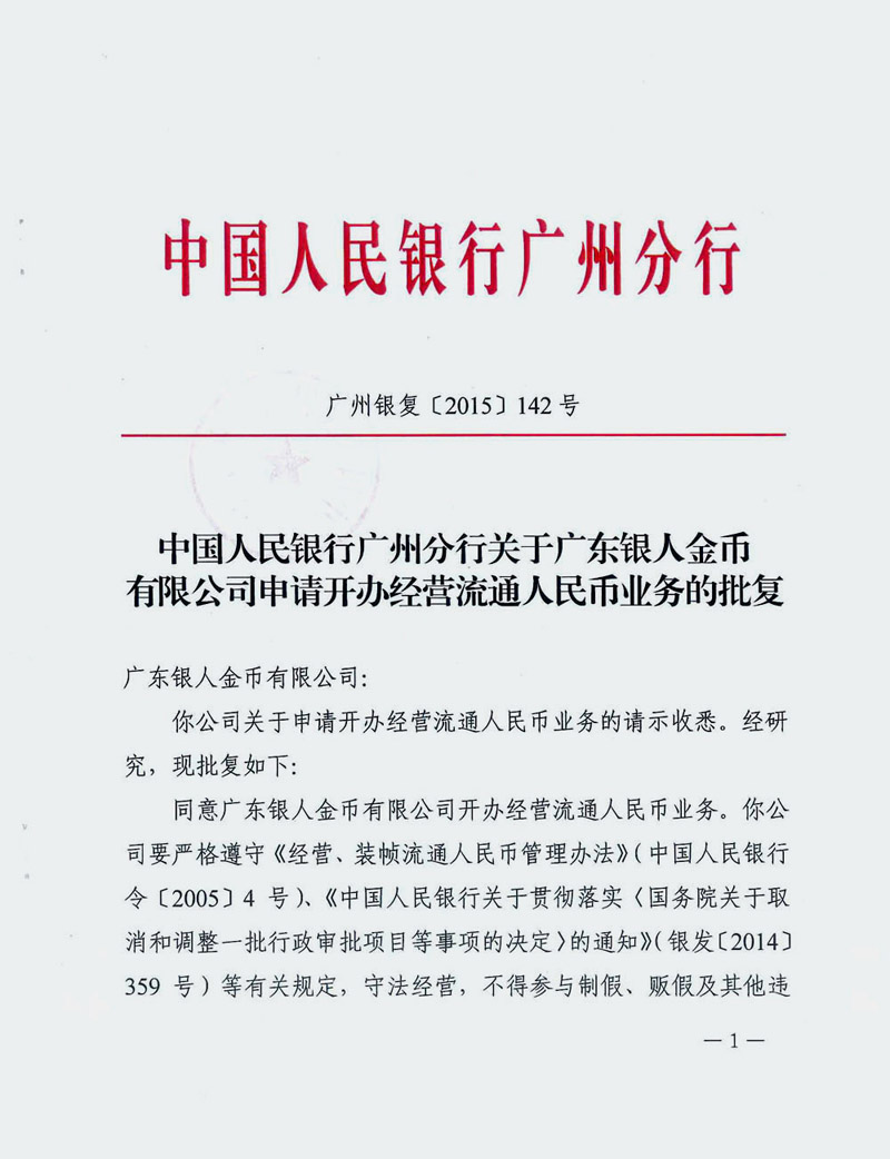 中國人民銀行批復紅頭文件公涵
