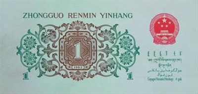 “背綠”停止了生產(chǎn)。印鈔廠轉(zhuǎn)入了第三個一角券的生產(chǎn)。新一角券正、背面主景、花團、裝飾、文字均未發(fā)生變化,只是背面的顏色由深綠色改為棕色,印制工藝改為正、背面膠版印刷,生產(chǎn)效率得到大大提高。該券于1967年12月發(fā)行,一直流通到八十年代末期。