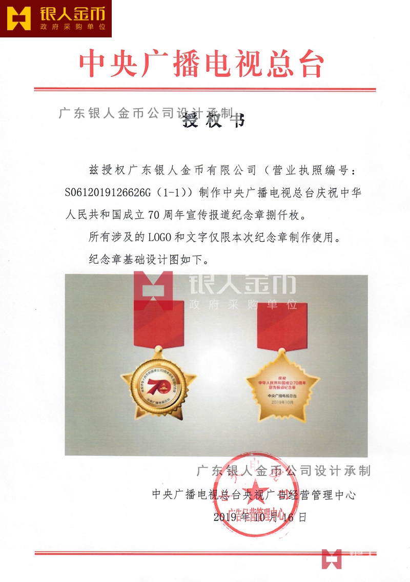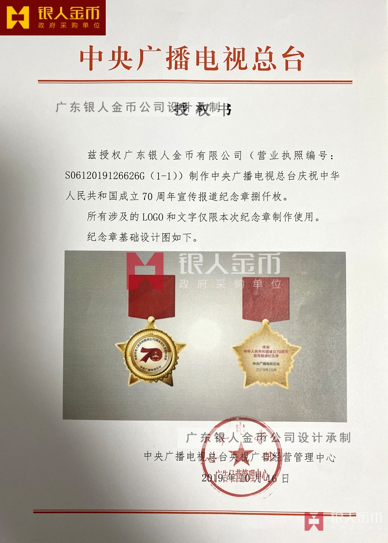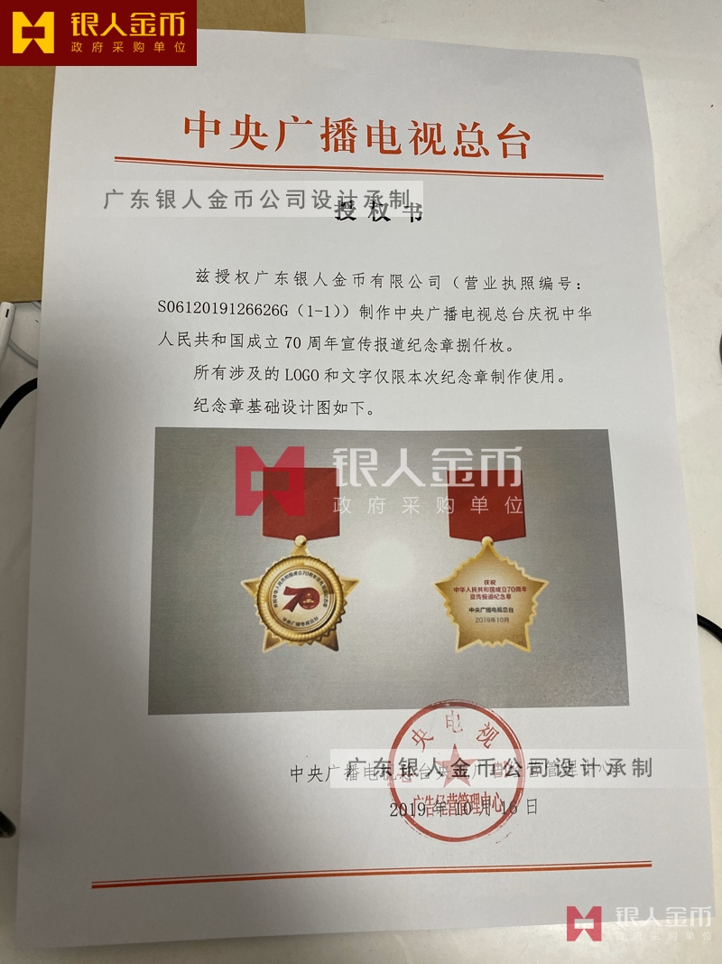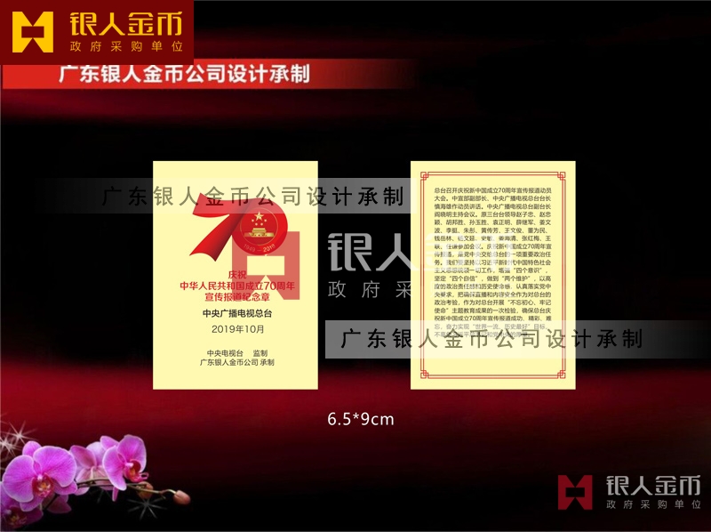 中央廣播電視總臺慶祝中華人民共和國成立70周年宣傳報道紀念章定制