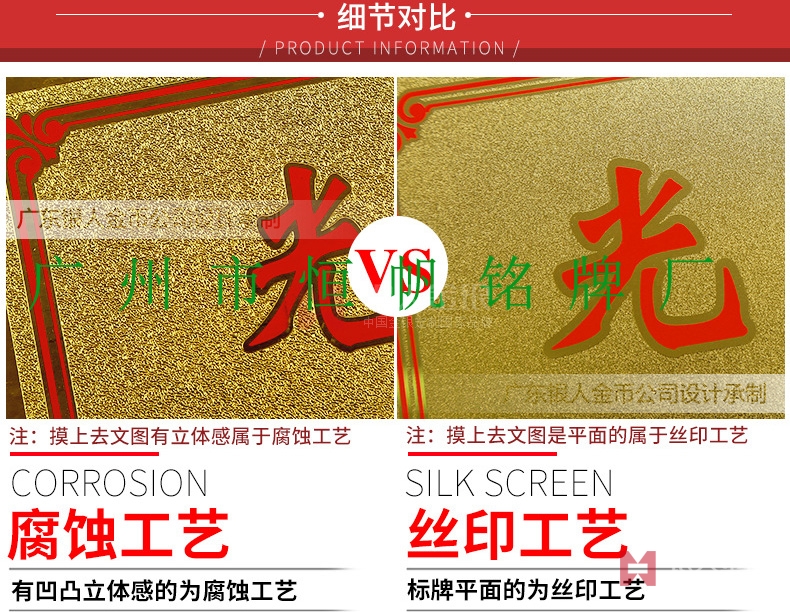 1 | 光榮牌一般要求 | 光榮牌應表面鍍氮化鈦,底色為金黃色、沙底鍍金,同顏色的區域內顏色應均勻一致,在照度500lx以上的自然光(或D62光源、C光源、A光源)下與標準色板比較,肉眼觀察應無明顯色差 標牌的周邊不應有明顯的毛刺和齒形及波形 正面應平整光潔,邊框線應勻稱,光滑、連續,不斷裂 文字、符號的大小和線條粗細應整齊醒目,排列均勻,不應斷缺和模糊不清 表面不應有裂紋和明顯的擦傷絲紋以及有影響其清晰的銹斑、斑點、暗影,涂鍍層不應有氣孔、泡、霧狀、污跡、皺紋、剝落或剝落跡象和明顯的顆粒雜質 粘貼標牌不應出現折痕、皺紋、自卷撕裂和粘貼劑滲出等現象 標牌的顏色應清晰醒目、色澤均勻,不應有泛色 兩種及兩種以上顏色套印的標牌,色彩間邊緣應整齊、清晰,兩色相接處不應有間隙 |