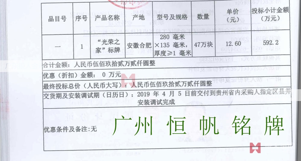 項目名稱 | 安徽省民政廳光榮牌采購 |