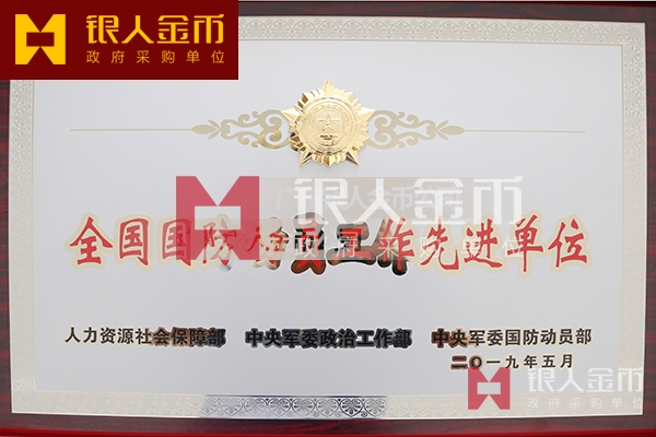 中央軍委政治工作部、中央軍委國防動員部、國務院人力資源和社會保障部頒發全國國防動員工作先進單位獎牌牌匾