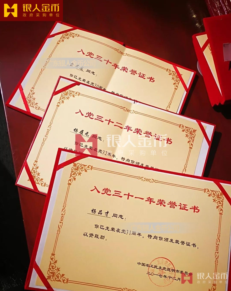 光榮在黨30年黨齡黨員紀(jì)念章、獎(jiǎng)?wù)陋?jiǎng)牌、榮譽(yù)證書(shū)