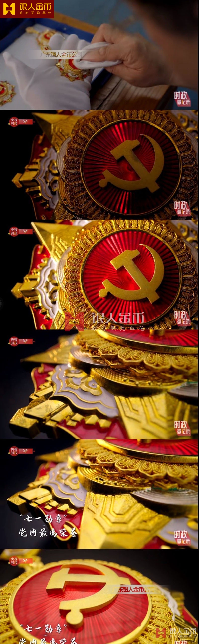 “七一勛章”是黨內(nèi)最高榮譽,以樸素、莊重為主要設(shè)計理念,以紅色、金色、白色為主色調(diào),使用冷壓成型、花絲鑲嵌、彩絲織錦等工藝制作。
