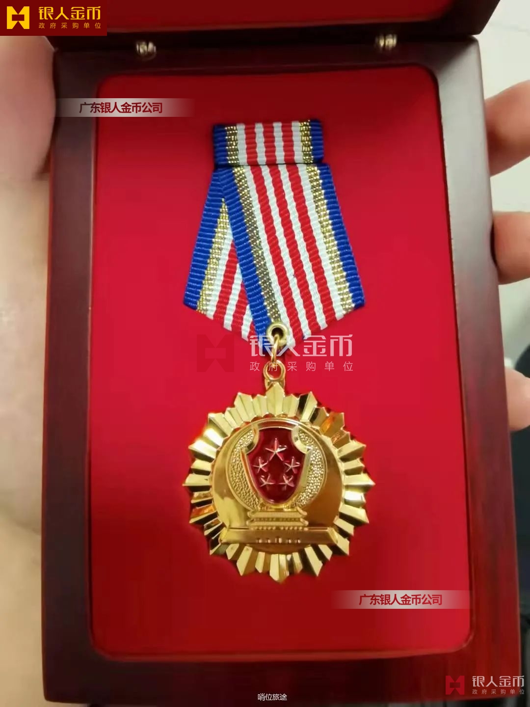 制作工藝:壓鑄成型、烤漆、一級英雄模范鍍24k金 配件材質:綬帶采用紅色絲綢