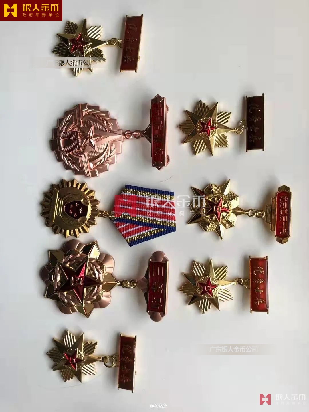 黨中央頒發的國家功勛章和紀念章及功臣獎章、國務院授予的國家功臣勛章和紀念章、中央軍委授予榮獲的軍功章和勛功章與紀念獎章及紀念章包括榮譽獎章和榮譽勛章、原國防部國防科工委發放的勛功章和榮譽章和榮譽證章及紀念徽章、國家部委級表彰的高檔獎牌獎章勛章證章及榮譽紀念牌與榮譽紀念章、各地省委自治區直轄市表彰的獎章勛章與紀念證章、各地區行署州委市委獎勵的獎章獎牌和紀念獎牌與紀念胸章、各公檢法政法委政府單位獎勵表彰的紀念牌、退休紀念章、榮休紀念牌、包括各企事業單位記功記大功獎章、公務員一二三等功獎章。