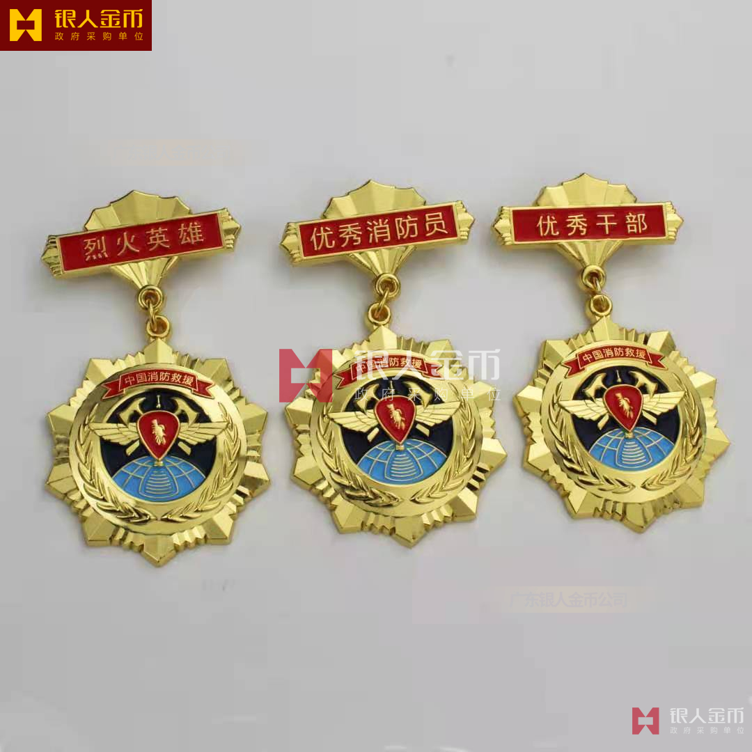 中國消防救援局一二三等功獎章、忠誠衛士獎章、優秀消防員金銀銅質獎章、烈火英雄獎章、優秀干部一級英模獎章、二級英模獎章、紀念章表彰獎勵證章定制(圖)