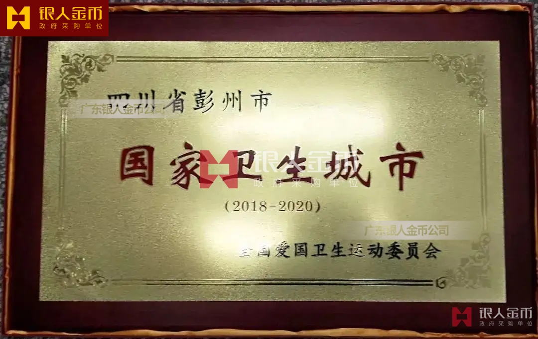 全國愛國衛生運動委員會頒發全國衛生城市獎牌牌匾銅牌(圖)