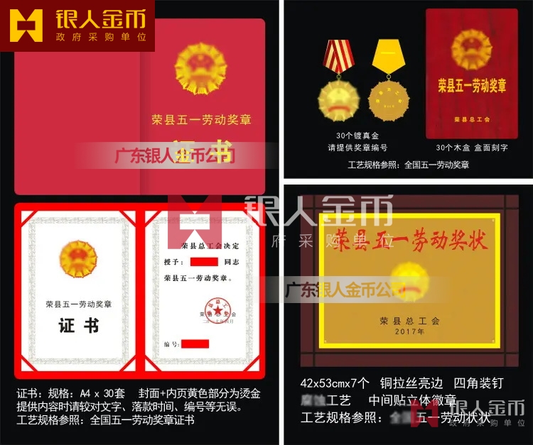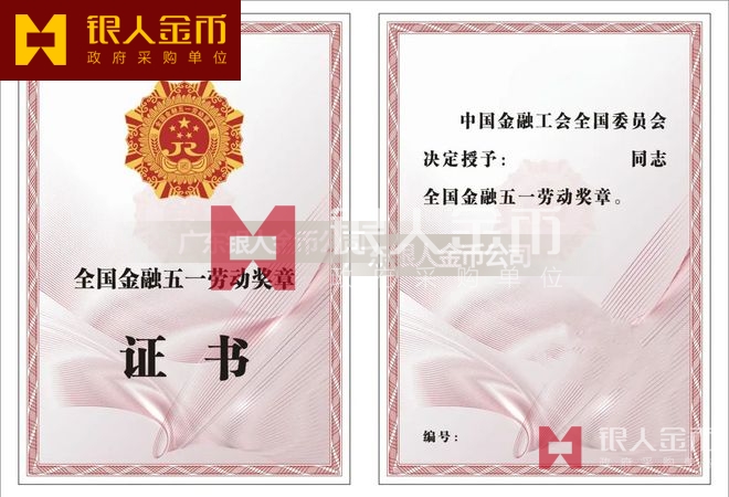 新版 “全國金融五一勞動獎”獎?wù)隆⒓o念章、勛章、證章、徽章