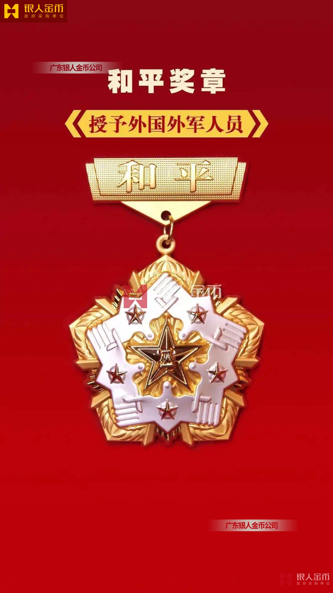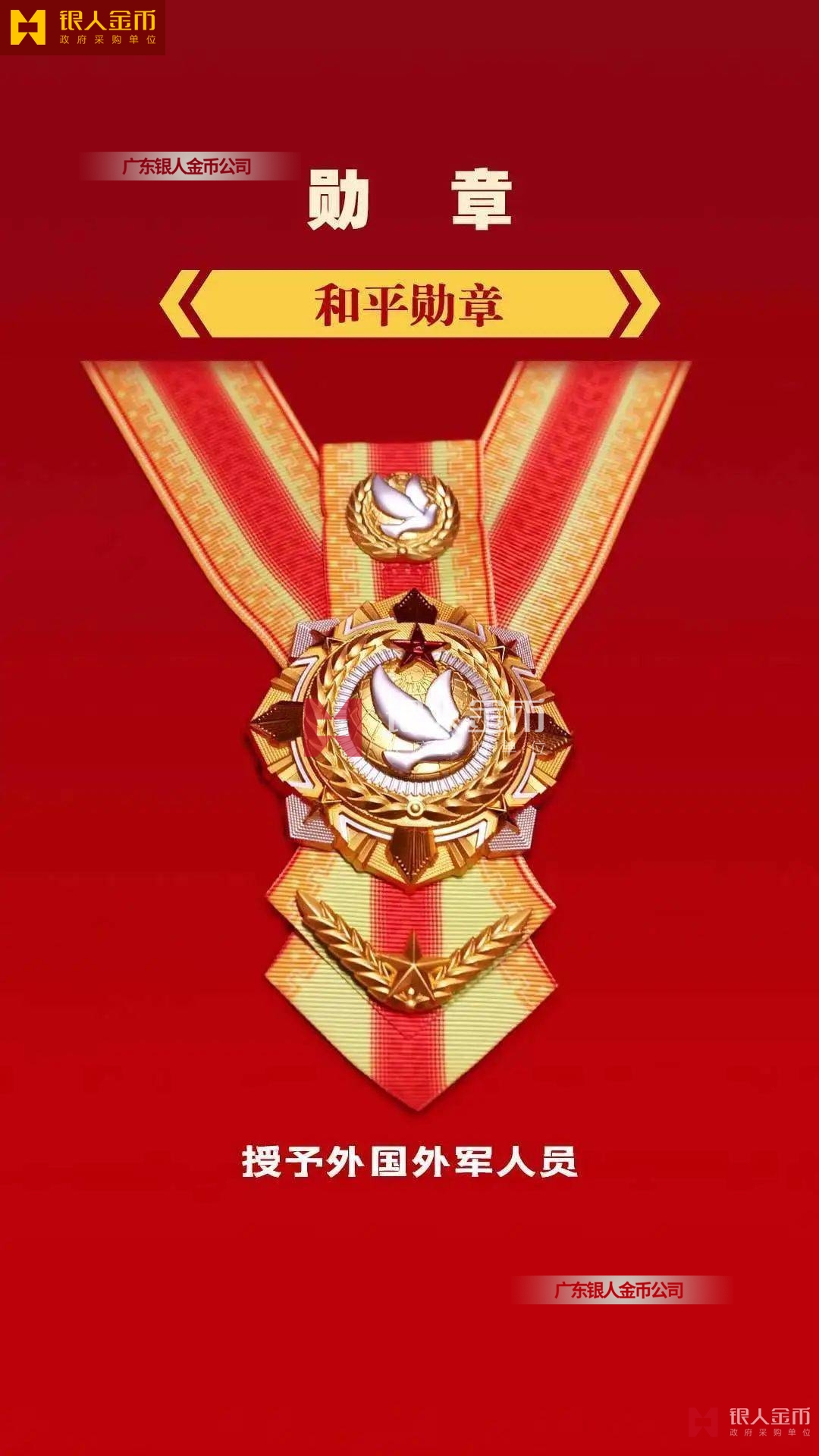 和平獎?wù)拢绍娀铡⒑推进潯㈤蠙熘Φ仍貥?gòu)成,授予外國外軍人員,主章通徑為60mm。