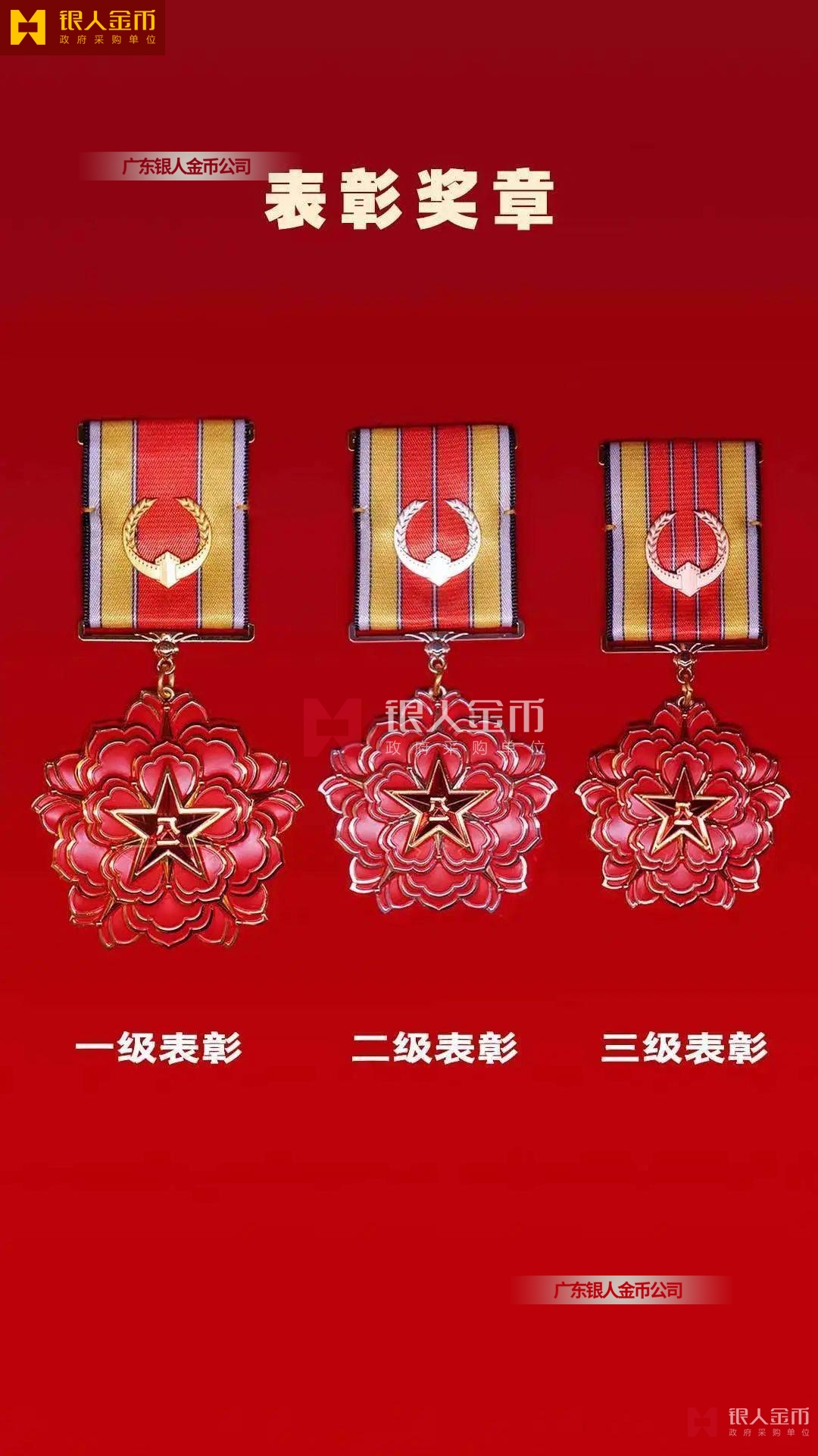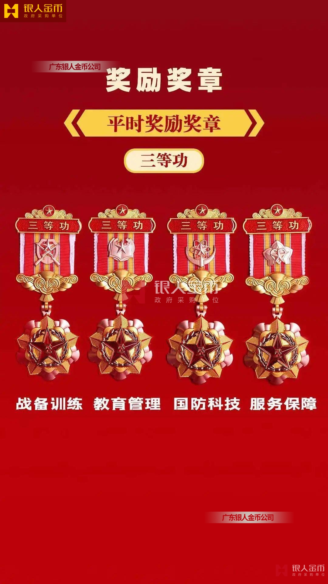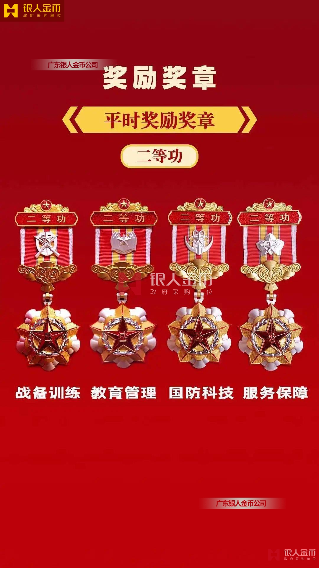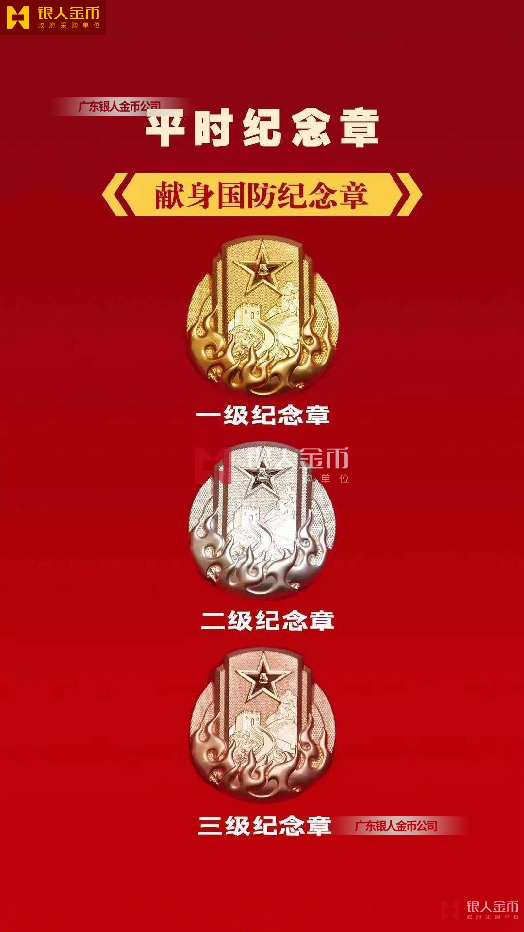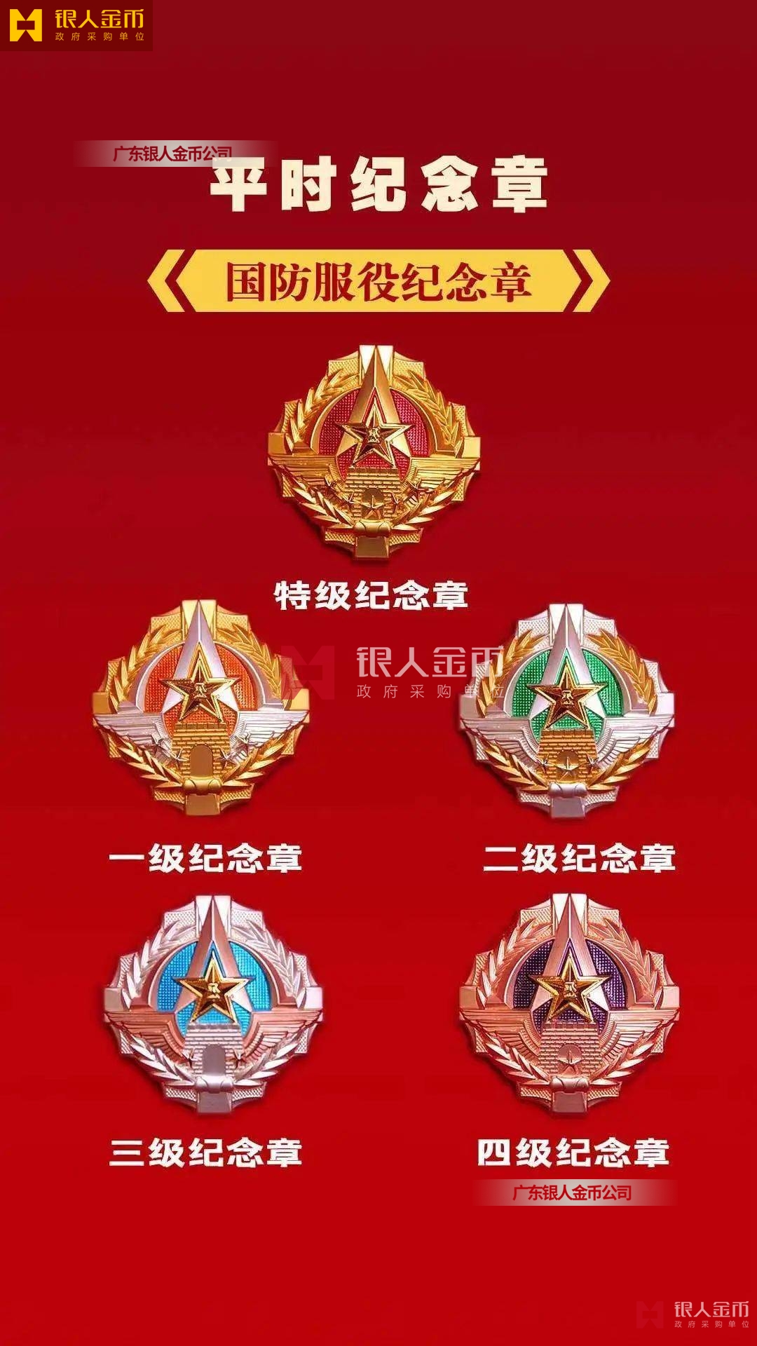 規(guī)格上,從內(nèi)容元素、尺寸外觀、制作材質(zhì)等方面進行區(qū)分,從紀念章到勛章尺寸依次增大。