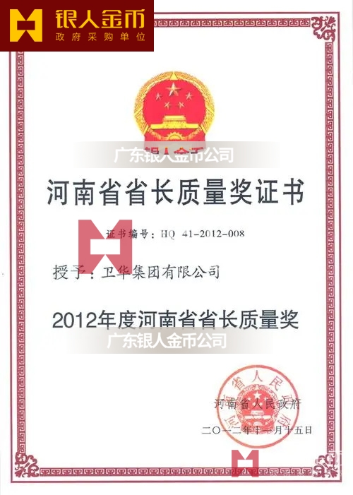 河南省政府河南省省長質(zhì)量獎獎章獎牌獎杯及證書(圖)【廣州銀人獎章證章廠有限公司】