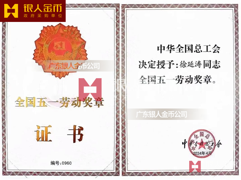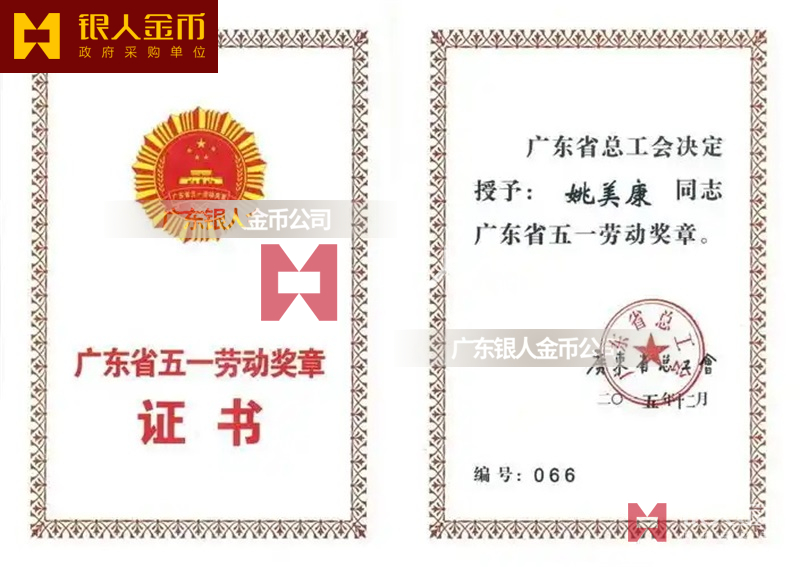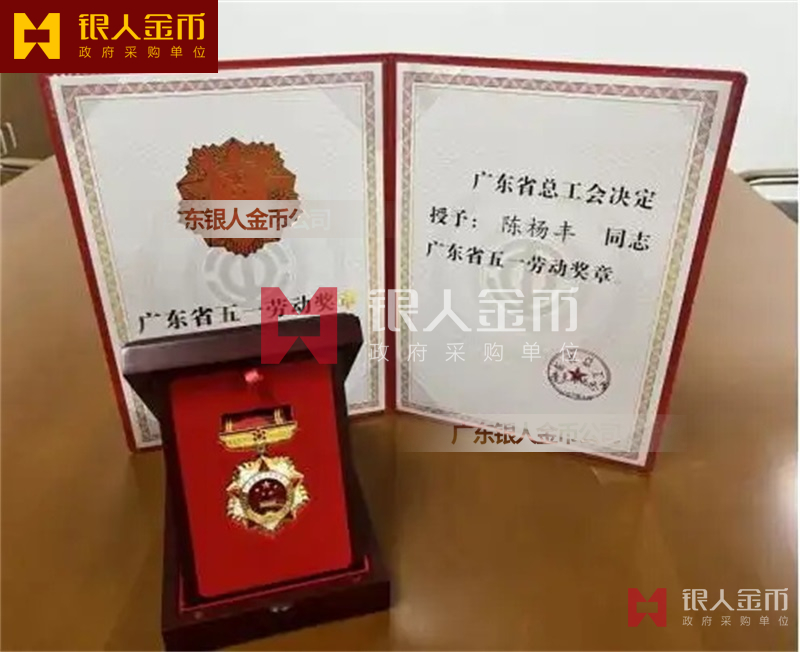 廣東銀人金幣公司,是集紀念章、獎章、勛章設計、研發、定制并服務于榮譽稱號全表彰獎勵周期管理,致力于證章文化產業發展和徽章信息化研究的大型生產制造獨資企業,是國家級紀念章、獎章的設計者(外包)、制造者(定點)和維護者(認可),金銀章綜合解決方案的提供者。在全國獎章勛章領域,廣東銀人金幣公司擁有專業的勛章產業規模、齊全的證章門類和完整的紀念章產業鏈條。