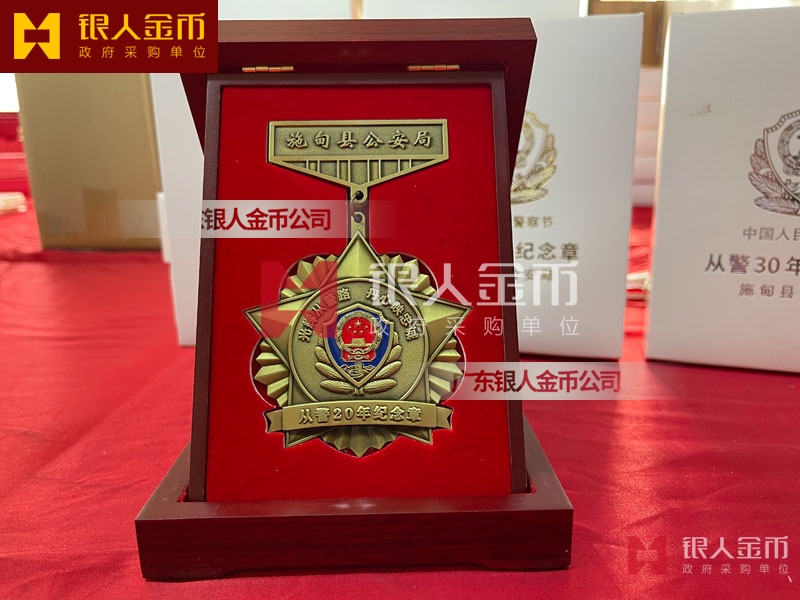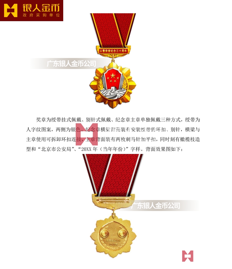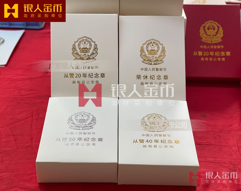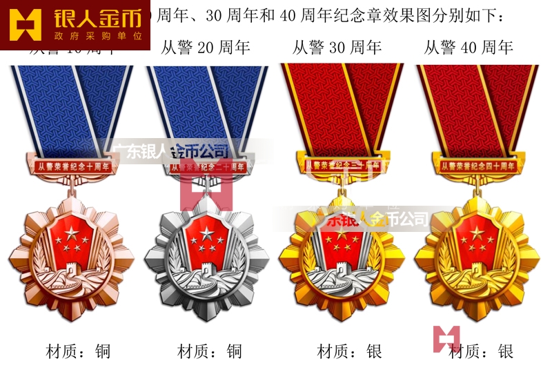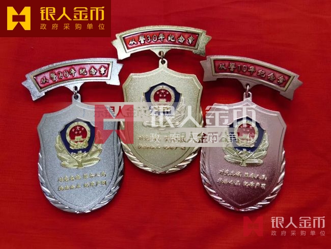 公安從警10年銅質紀念章獎章勛章、民警從警20年銀質紀念章紀念徽章證章、警察從警30年金質紀念章獎牌榮譽章胸章