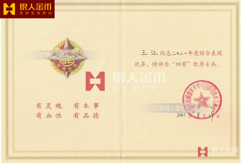 中央軍委政治工作部監(jiān)制“四有”優(yōu)秀士兵和“四有”優(yōu)秀軍官獎(jiǎng)?wù)聞渍录o(jì)念章(圖)--【勛章獎(jiǎng)?wù)录o(jì)念章制作廠家】