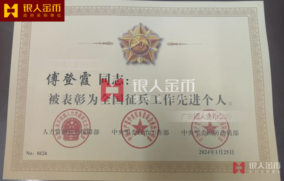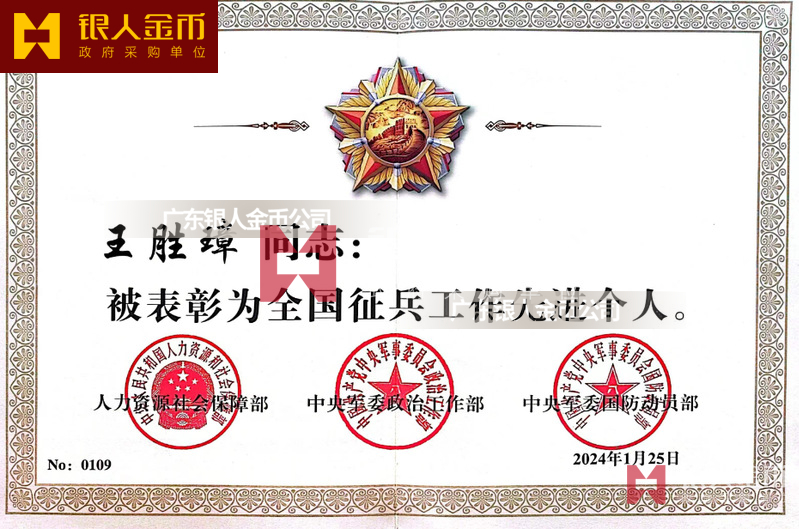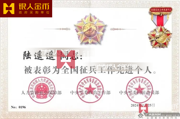 中央軍委政治工作部全國征兵工作先進單位獎牌證書/先進個人獎?wù)伦C書(圖)