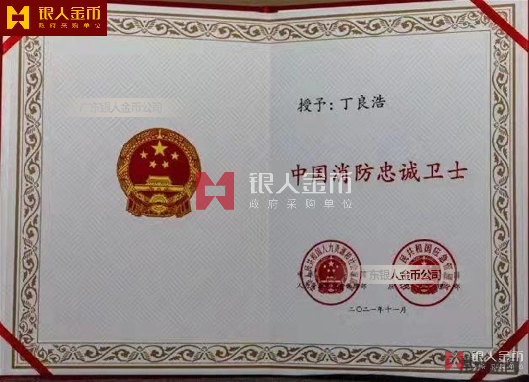 應急管理部中國消防忠誠衛士獎章與全國應急管理系統二級英雄模范獎章證書(圖)