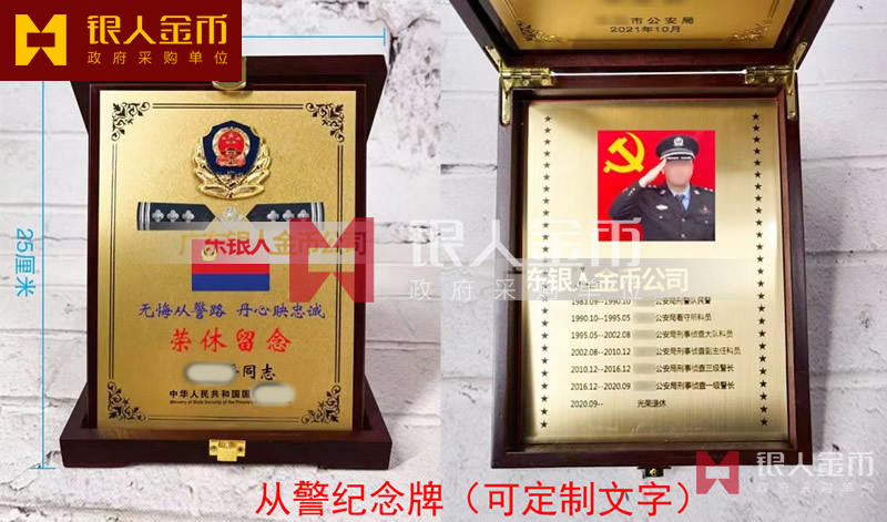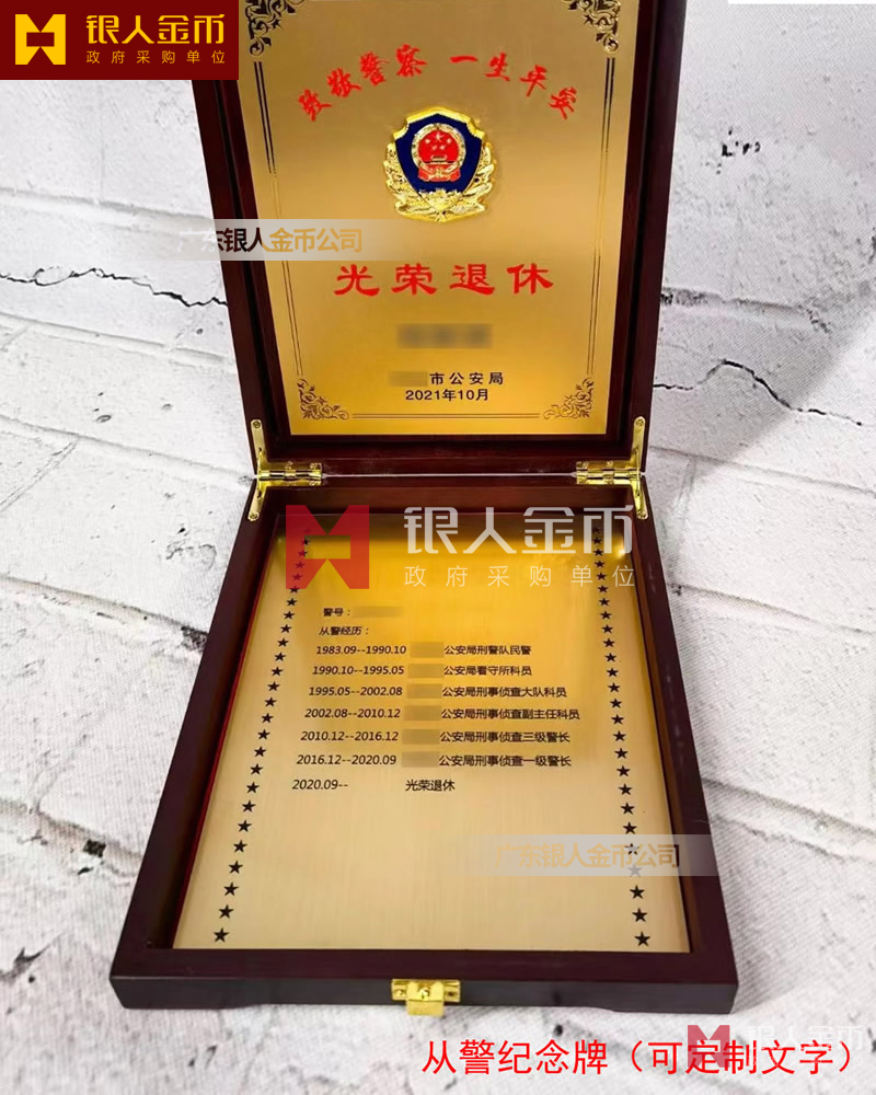 公安機關民警警察光榮退休紀念牌