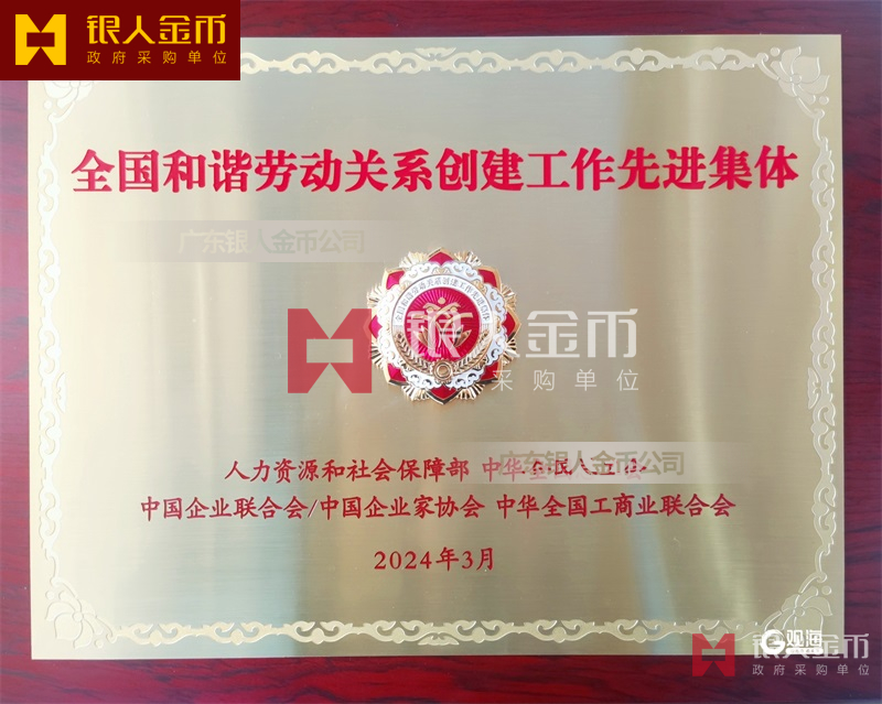 人社部全國和諧勞動關系創建工作先進集體獎牌證書牌匾銅牌(圖)