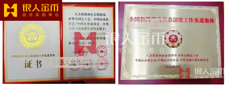 全國和諧勞動關系創建工作先進集體”稱號獎牌、證書