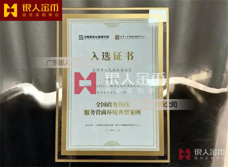 全國行政服務大廳典型案例展示活動百優稱號獎牌證書牌匾(圖)
