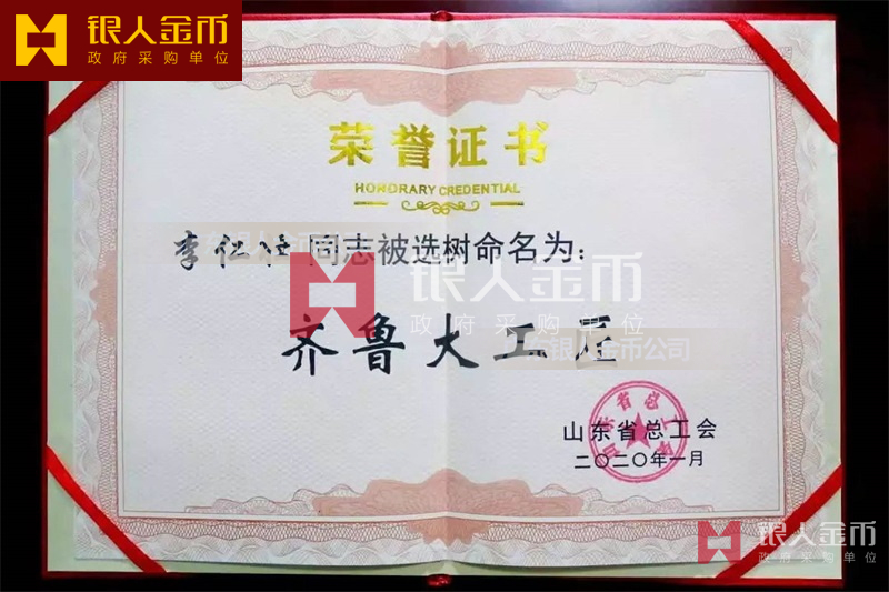 山東省委省政府省人社廳省總工會齊魯大工匠獎章勛章齊魯大工匠獎杯獎牌證書(圖)