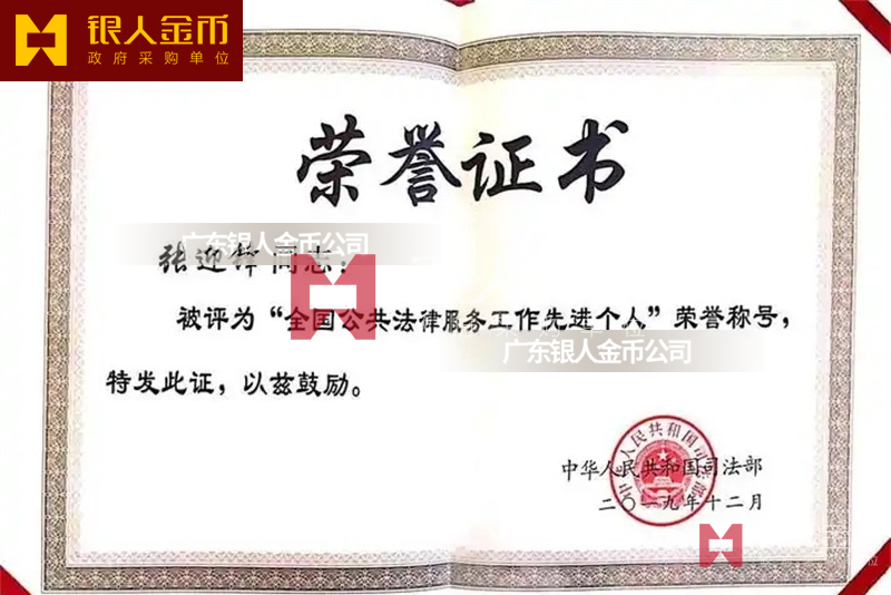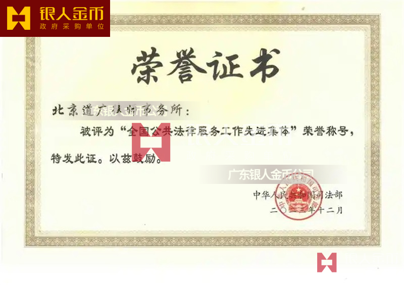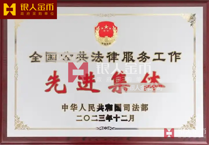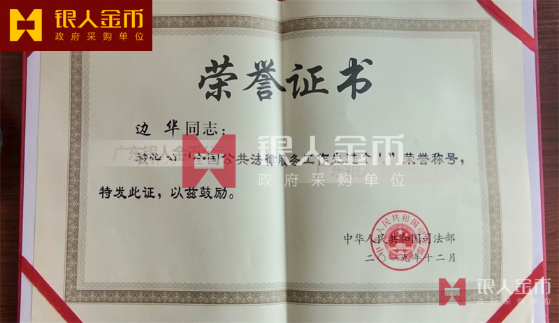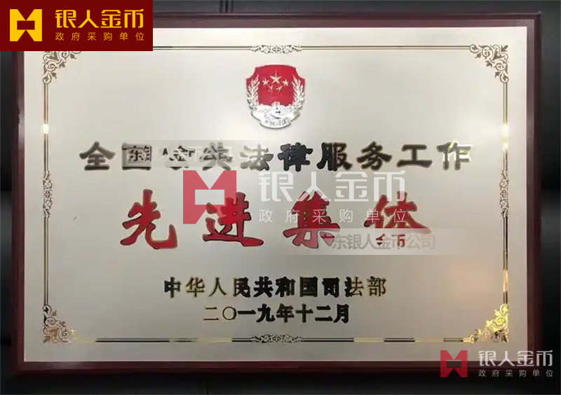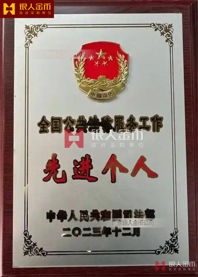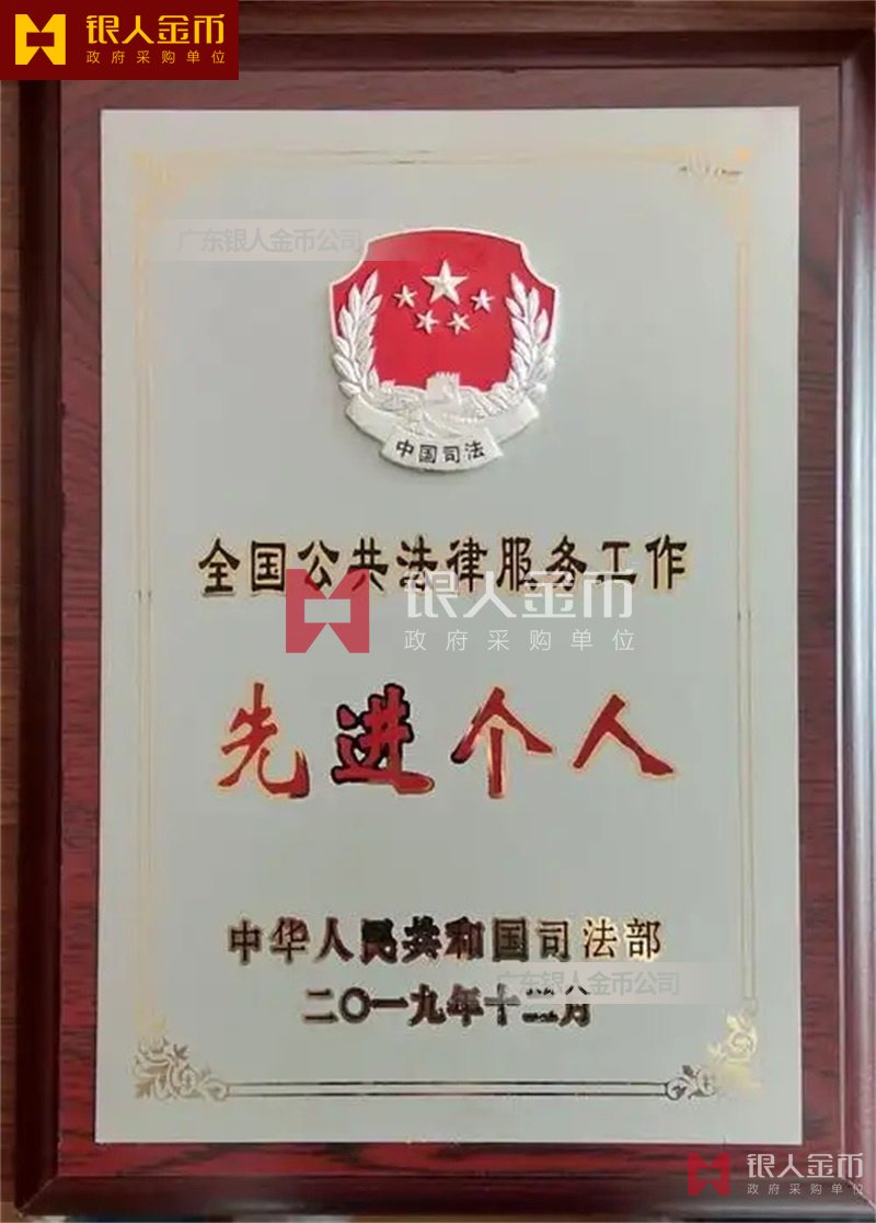 司法部全國公共法律服務工作先進個人和先進集體獎牌證書(圖)