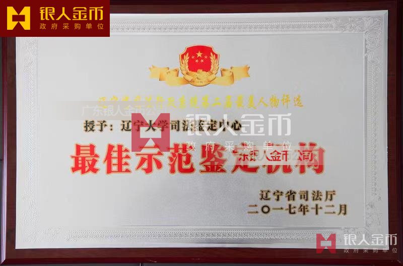 司法部行政先進集體獎牌和最佳司法示范鑒定機構牌證書(圖)