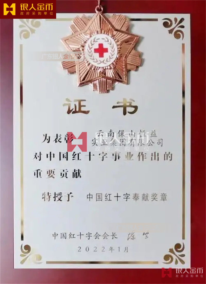 中國(guó)紅十字會(huì)總會(huì)公益事業(yè)的榮譽(yù):中國(guó)紅十字會(huì)奉獻(xiàn)獎(jiǎng)?wù)聞渍陋?jiǎng)牌證書(圖)-【制作標(biāo)準(zhǔn)規(guī)范】