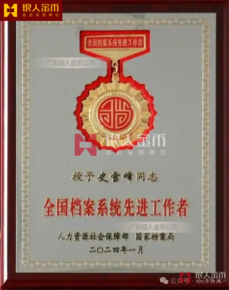 國家檔案局全國檔案系統先進集體獎牌證書和先進工作者獎章證書勛章紀念章證書(圖)