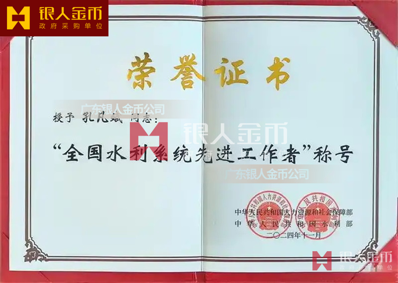 中華人民共和國水利部全國水利系統(tǒng)先進集體獎牌證書和先進工作者獎?wù)聞渍录o(jì)念章證書(圖)