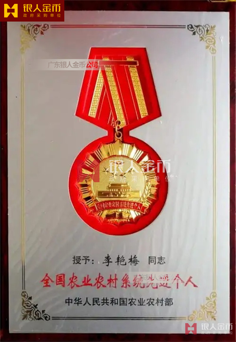 中華人民共和國農業農村部全國農業農村系統先進集體獎牌證書和先進工作者先進個人獎章勛章紀念章證書(圖)