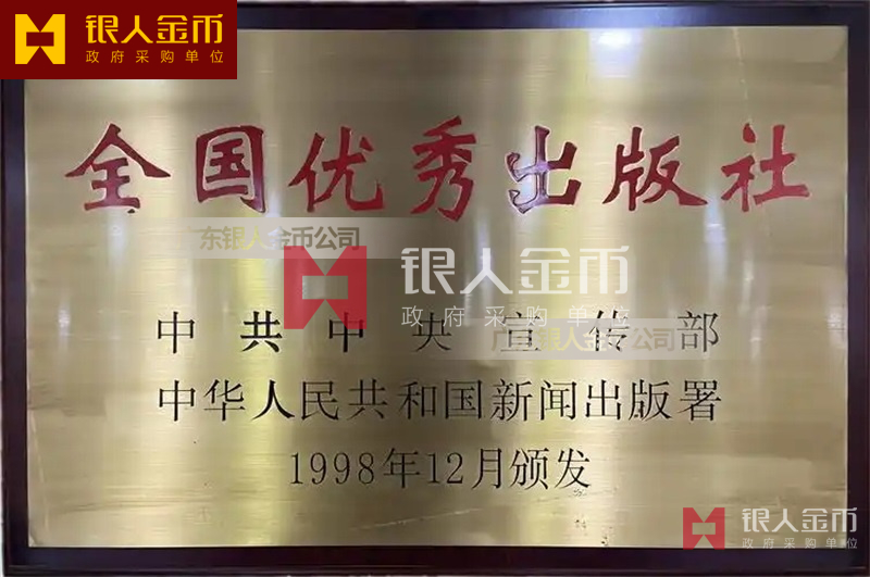 中共中央宣傳部和國家新聞出版署全國優秀出版社獎牌證書(圖)