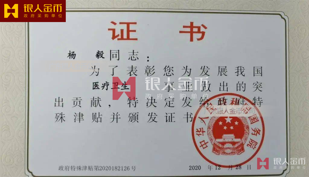 中華人民共和國國務院政府特殊津貼證書(圖)