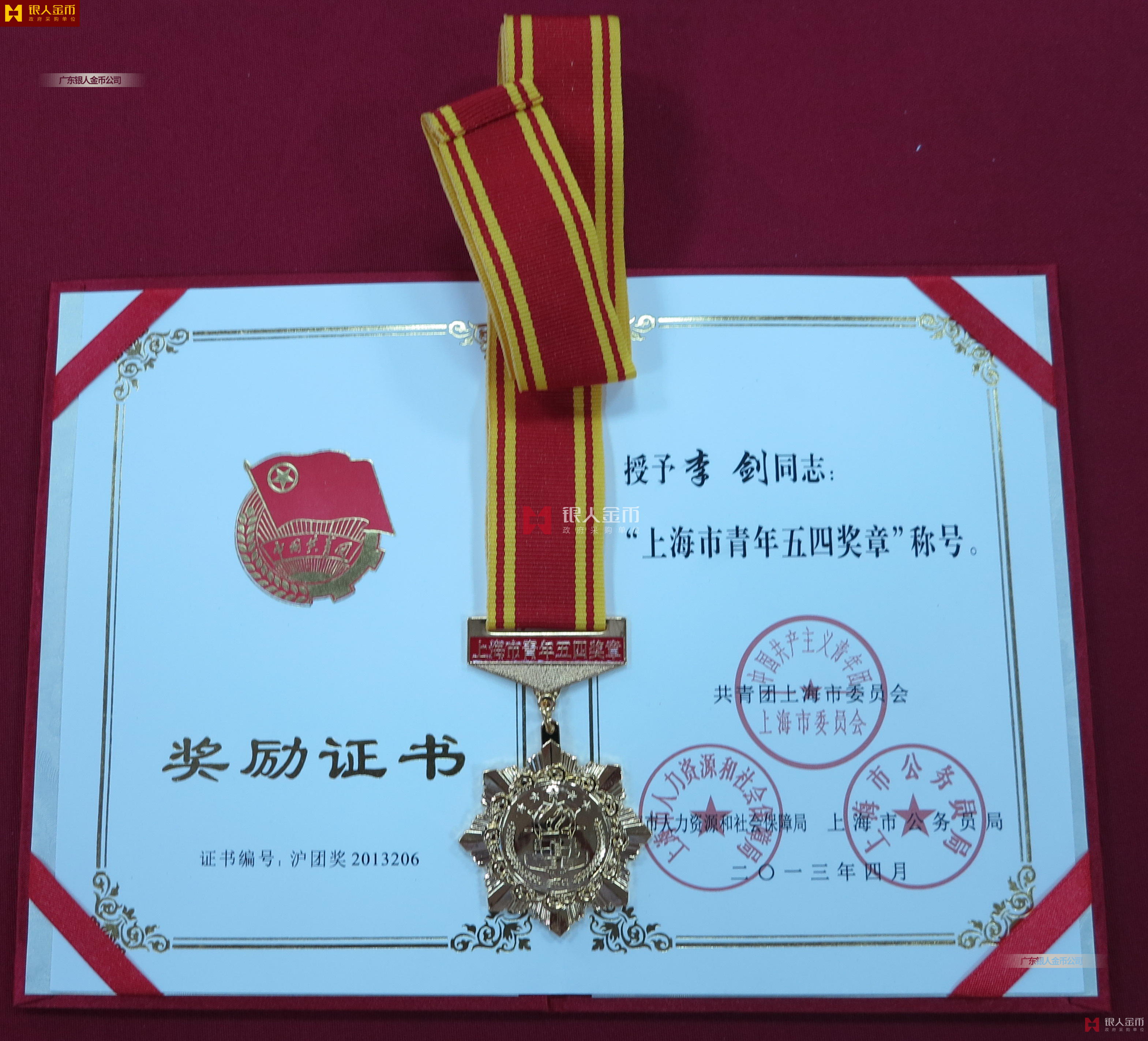 共青團中央辦公廳 全國青聯中國青年五四獎章證書和中國青年五四獎章集體獎牌證書(圖)