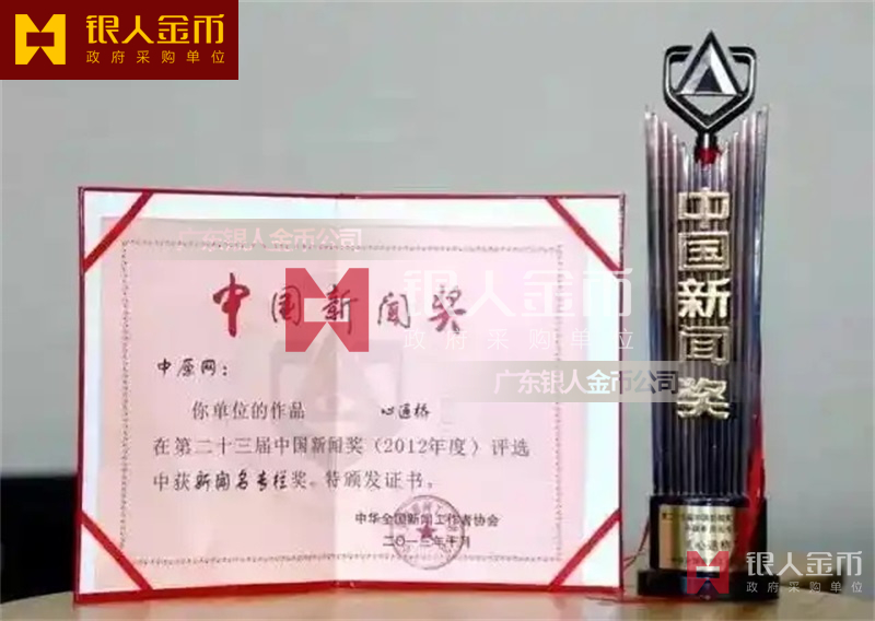 中國新聞工作者協會中國記協中國新聞獎、長江韜奮獎、范長江新聞獎獎杯證書(圖)