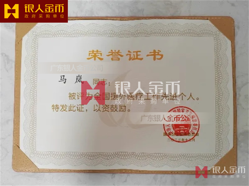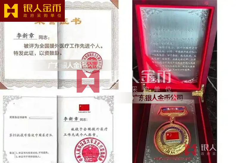中華人民共和國國家衛生健康委員會(原衛生部)全國援外醫療工作先進集體獎牌證書和先進個人獎章紀念章勛章證書(圖)