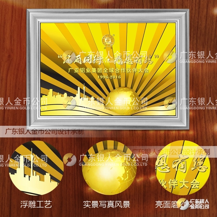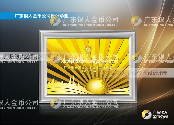2016年4月定制 廣亞鋁業全球合作伙伴純金金畫浮雕金箔畫
